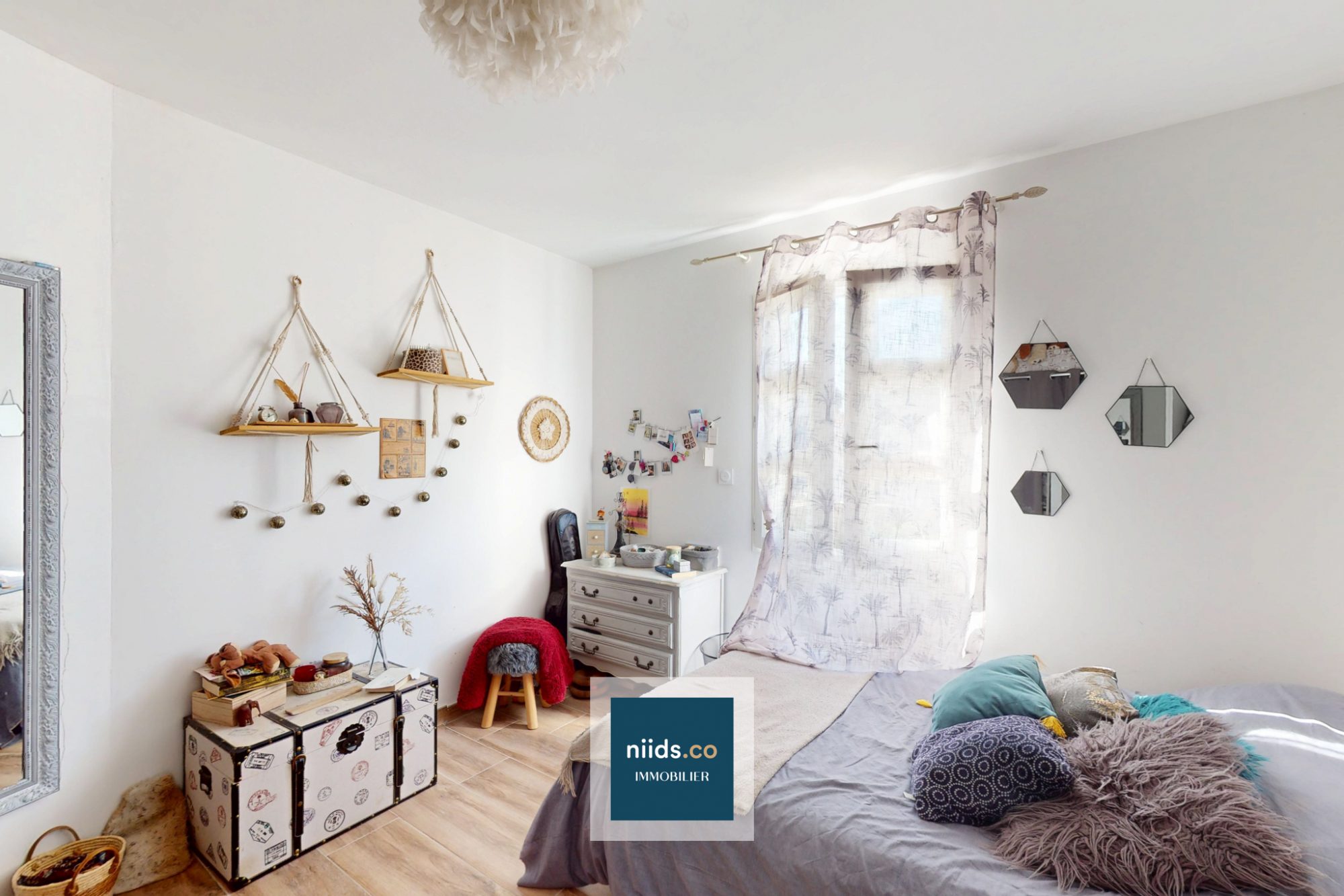 - Trois chambres avec dressings aménagés, deux de 11 m² et une de 12 m²