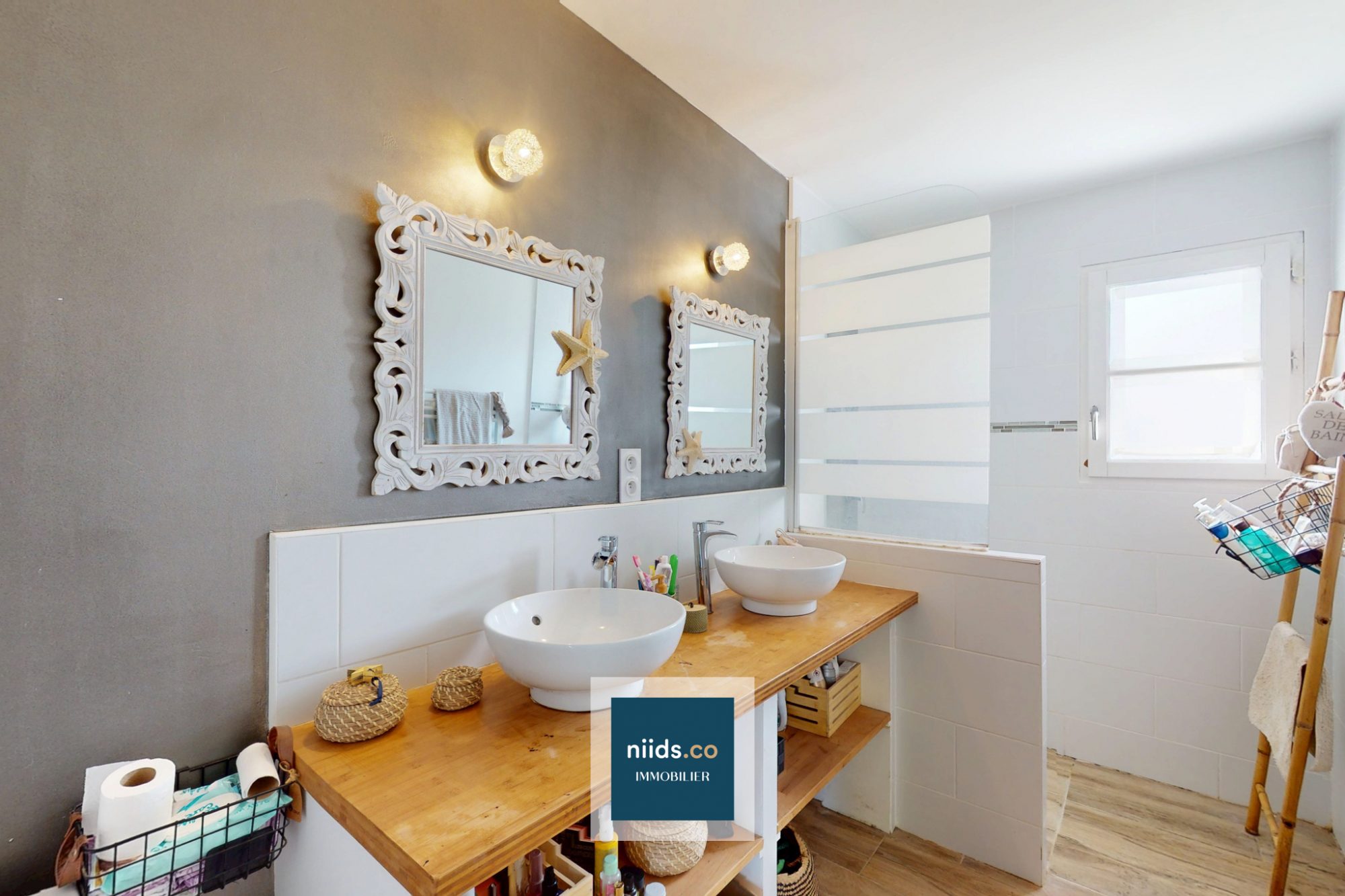 - Une salle d’eau avec double vasque de 6 m²