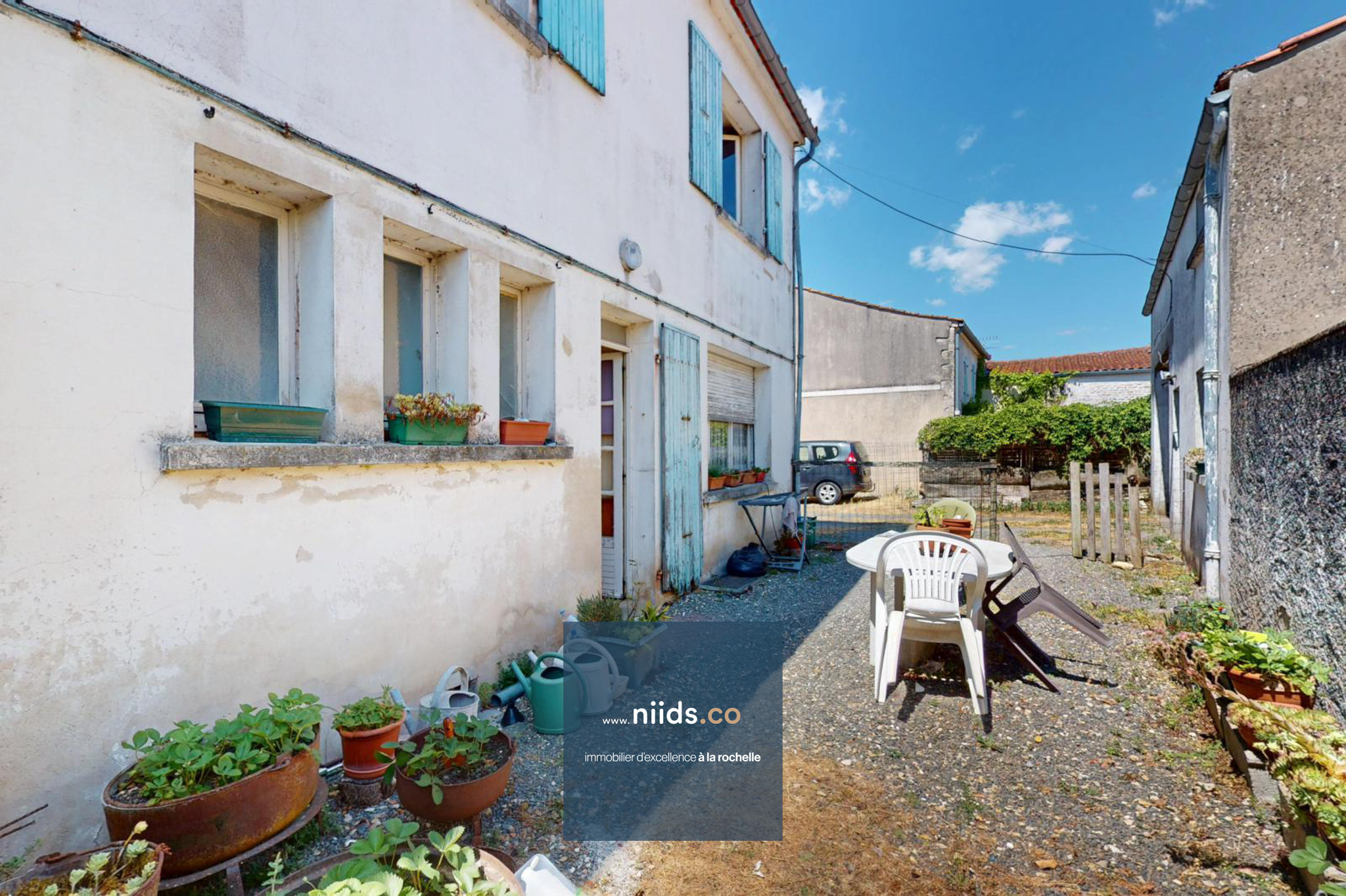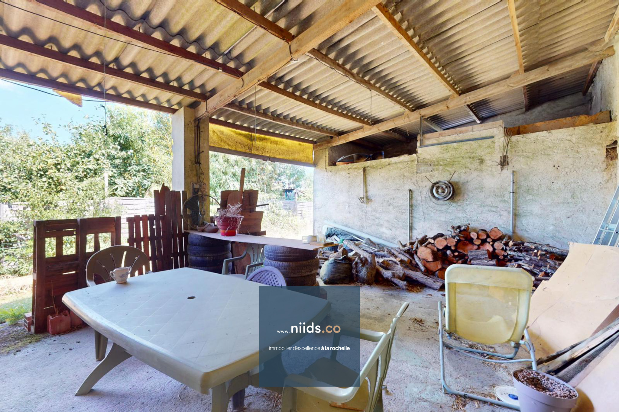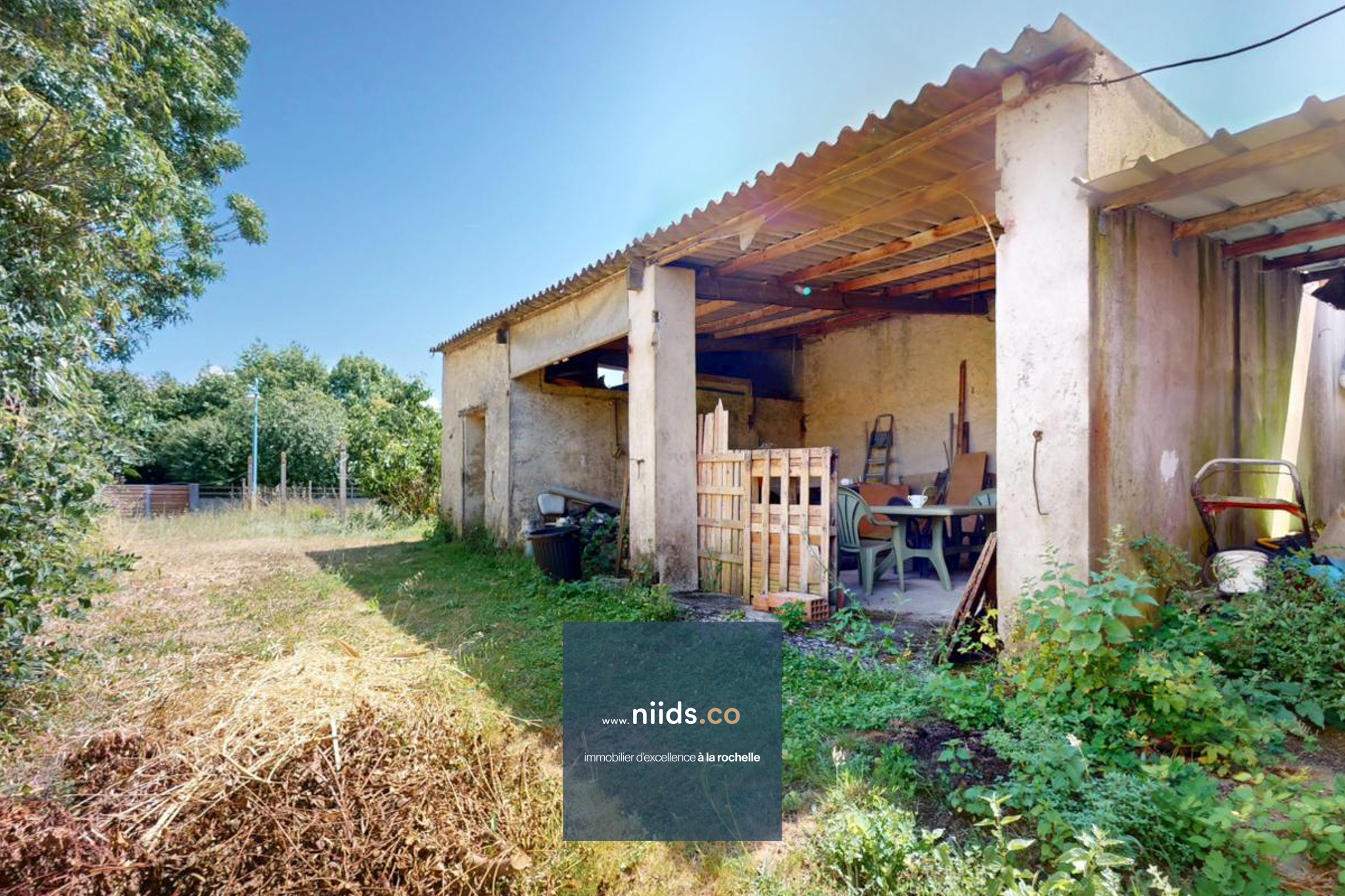 L'extérieur vous offre un jardin attenant à la maison, un garage indépendant d'environ 55m² avec mezzanine. Un accès, depuis le garage, à l'arrière de la propriété donnant sur un grand terrain divisible d'environ 400m² avec abri à réhabiliter.