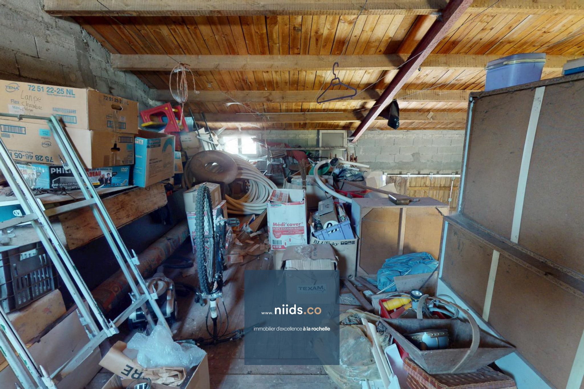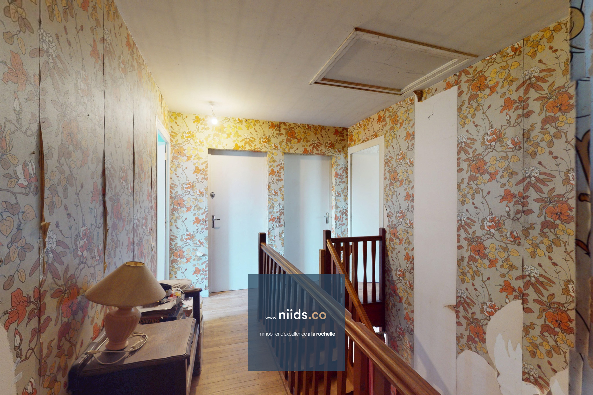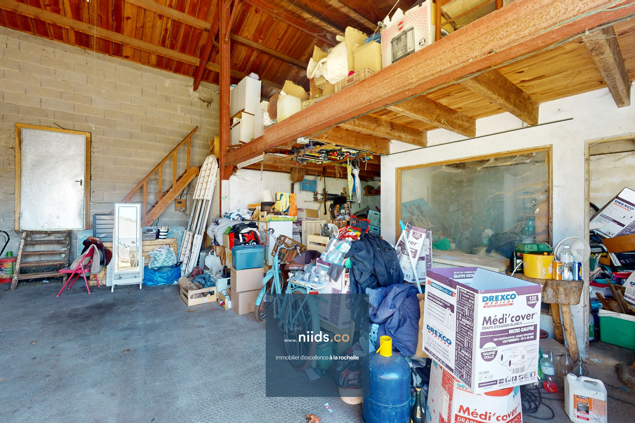 - Un couloir menant à un atelier avec grenier