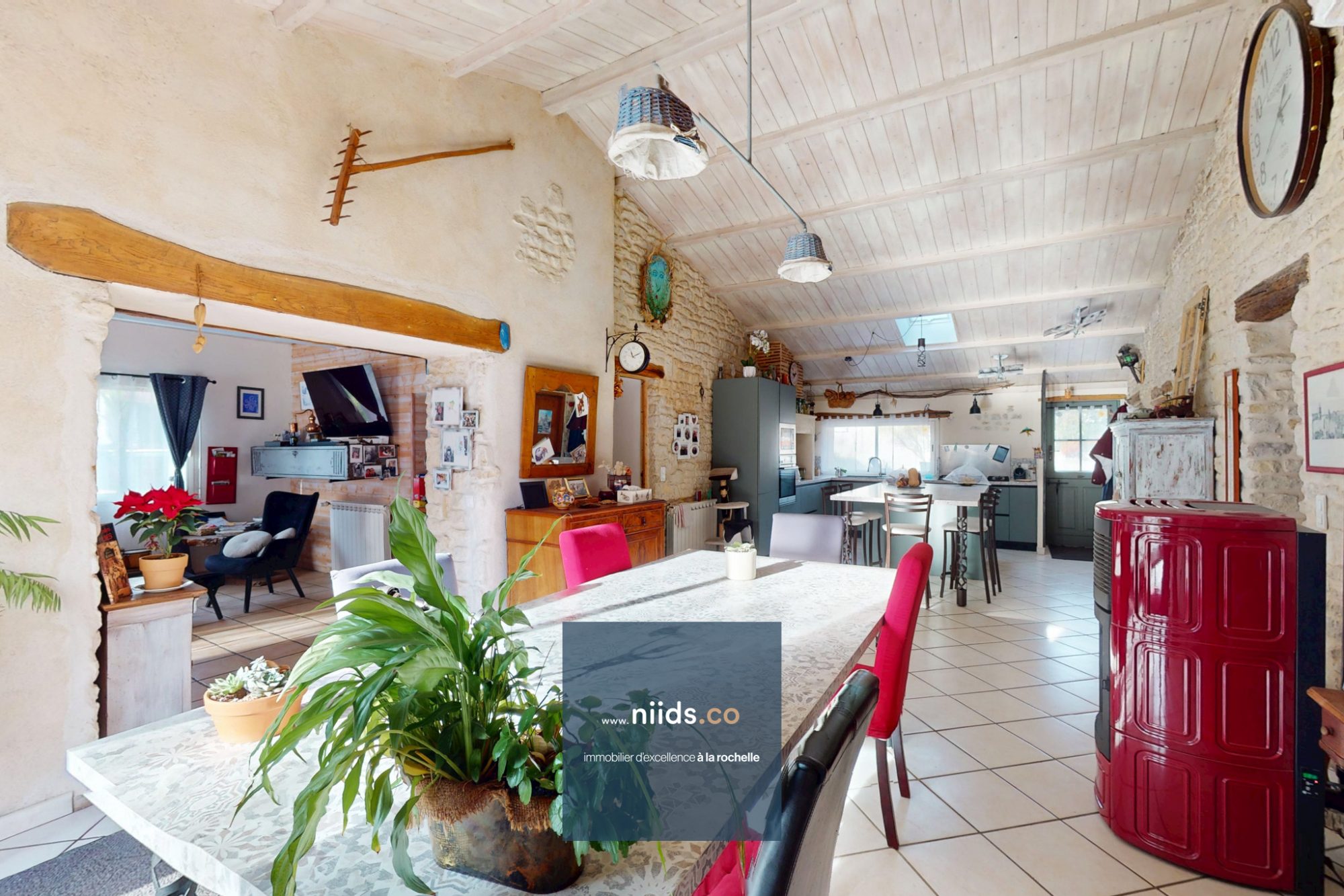 Située dans le centre village d’Andilly, au calme et à l’écart de la circulation, cette longère rénovée propose un cadre de vie agréable. La maison offre un rez-de-chaussée généreux, organisé autour d’une grande pièce de vie traversante dotée de deux baies vitrées, ouverte sur une cuisine aménagée et équipée récente. Deux chambres se trouvent sur ce niveau. Une buanderie avec galetas, une salle d’eau avec douche à l’italienne et un WC indépendant complètent l’ensemble.